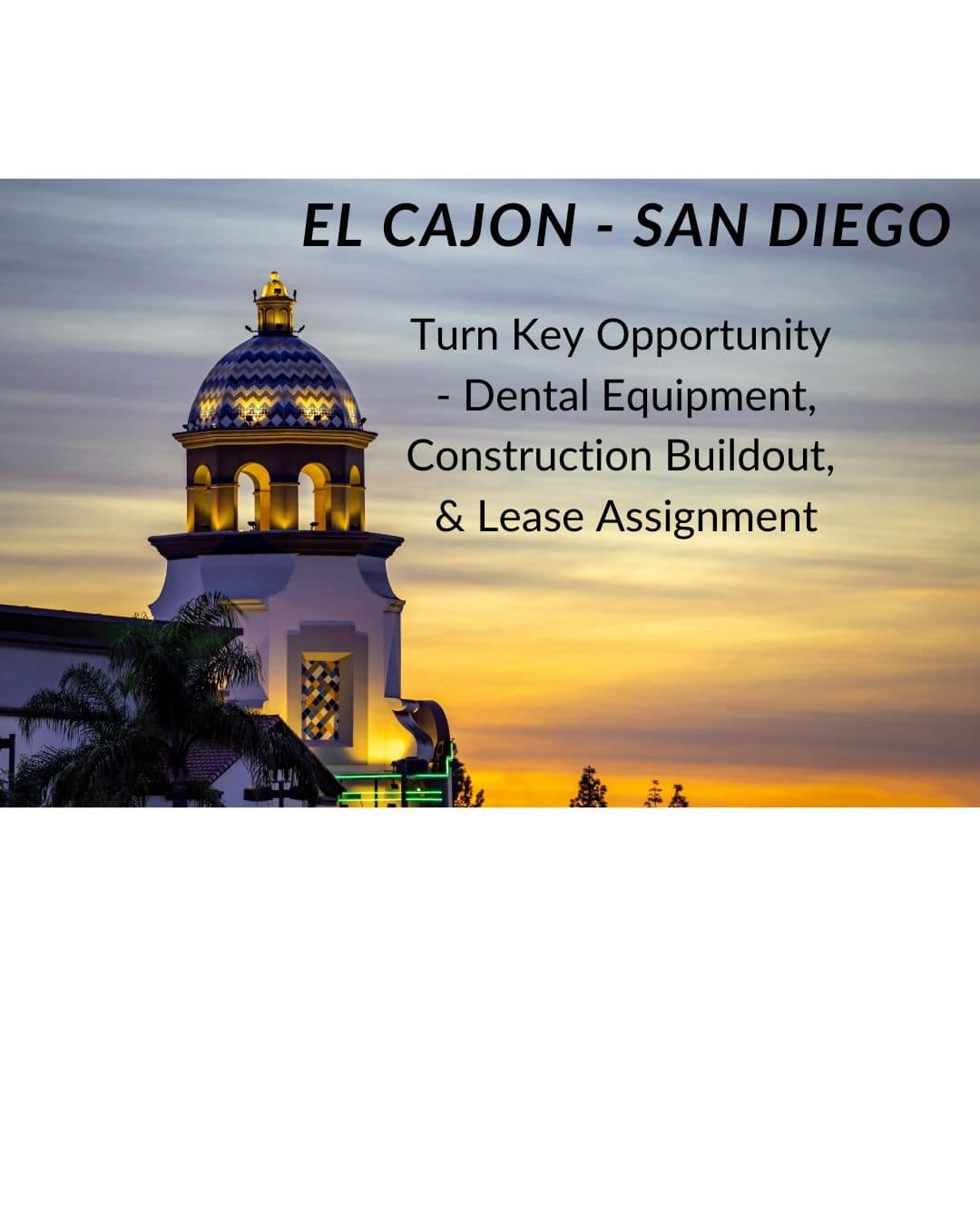 Exclusive Turnkey Opportunity: Modern, Profit-Ready Practice in El Cajon Area 639519Revenue: N/A Operatories: 6 Patient Count: 0 |