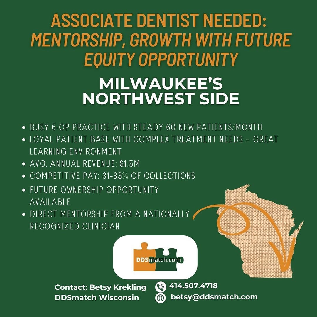 Associate Dentist - Fox Cities 439462Revenue: N/A Operatories: 9 Active Patient Count: 3000 |